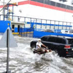 PERAVIA, BANI, RD.- Varias familias atrapadas y vías intransitables por las inundaciones se pudo apreciar este viernes en el municipio Baní, provincia Peravia, por las lluvias generadas por la tormenta Melissa.