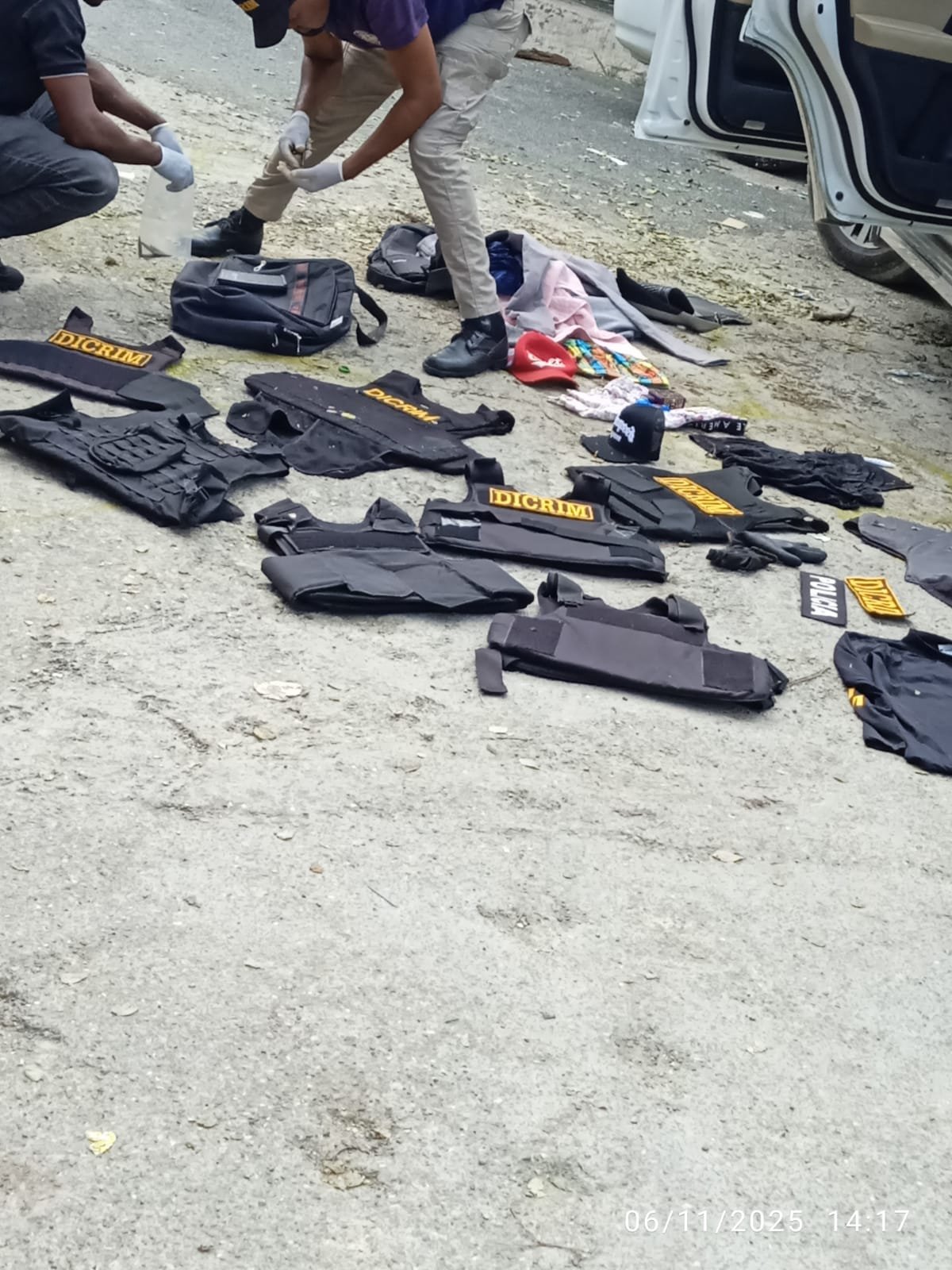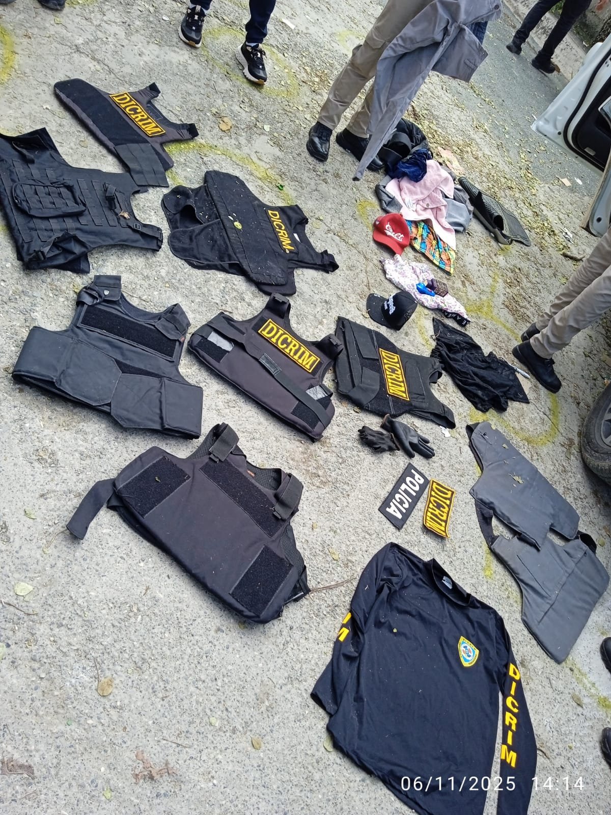 «En la escena se colectaron importantes evidencias, entre ellas armas de fuego, casquillos de distintos calibres, chalecos antibalas, dispositivos de comunicación, vestimentas y artículos que serán analizados por la Policía Científica para fortalecer la investigación», señaló la Policía.
