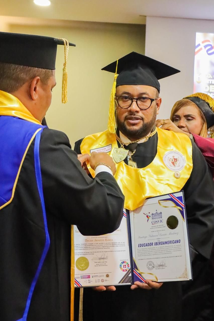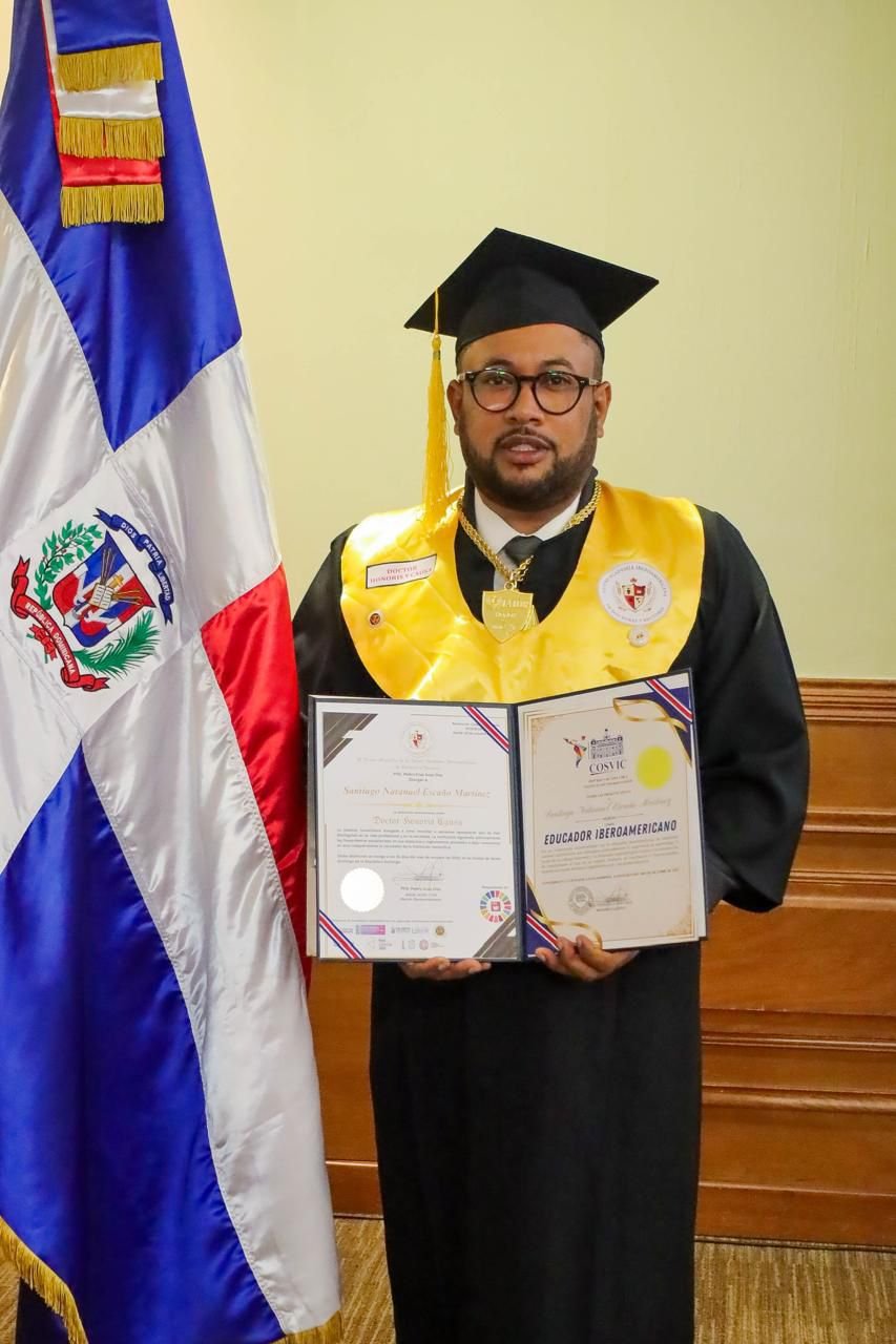 En una ceremonia solemne celebrada en la Ciudad de Santo Domingo, la Ilustre Academia Iberoamericana de Doctores y Rectores (IAIDR) otorgó a Santiago Natanael Escaño Martínez la distinción internacional “Doctor Honoris Causa”, la máxima investidura académica que se concede a nivel mundial a personas cuya trayectoria profesional y social destaca por su excelencia, compromiso y ejemplo para la comunidad global.