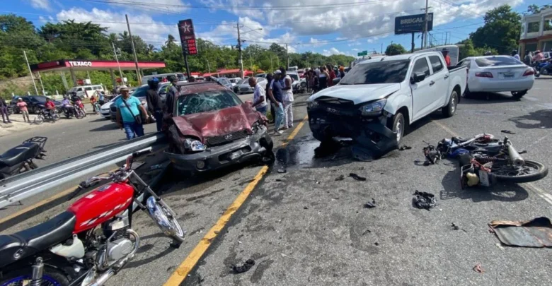 SAN CRISTOBAL, RD.-De acuerdo con datos preliminares, en el incidente estuvieron involucrados varios vehículos, entre automóviles y camionetas, que sufrieron daños significativos, principalmente en la parte frontal, como consecuencia del impacto múltiple.