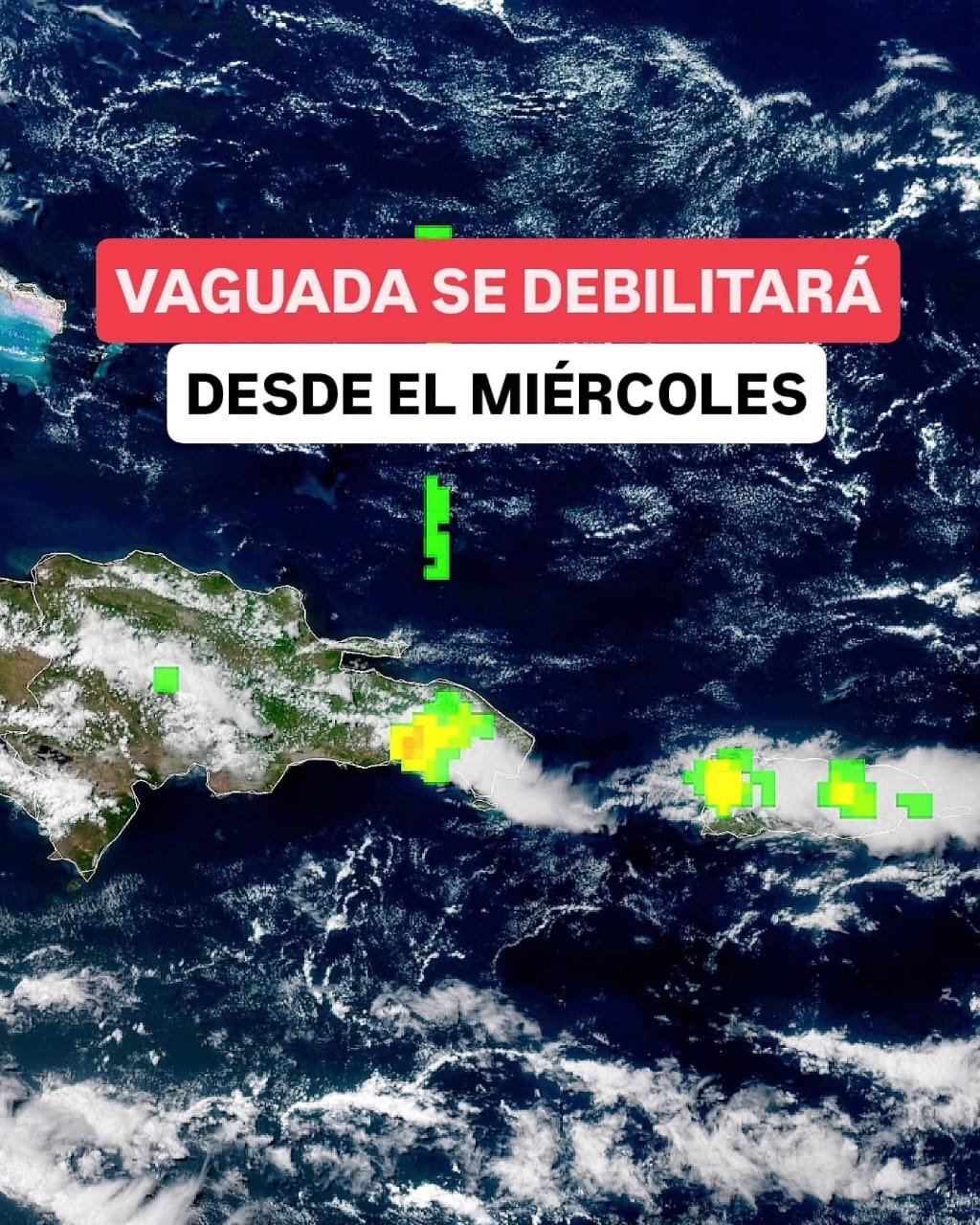 Para el miércoles, la vaguada empezará a debilitarse, registrándose una disminución en la intensidad y frecuencia de los aguaceros: aún así, los hermanentes del sistema provocarán precipitaciones moderadas al final de la tarde y durante la noche.