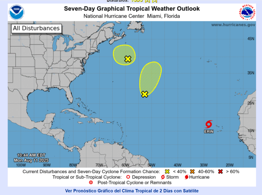 Además de este fenómeno, el NHC vigila dos sistemas en el Atlántico, al este de Estados Unidos, con una probabilidad de 10 % de formación ciclónica dentro de una semana.