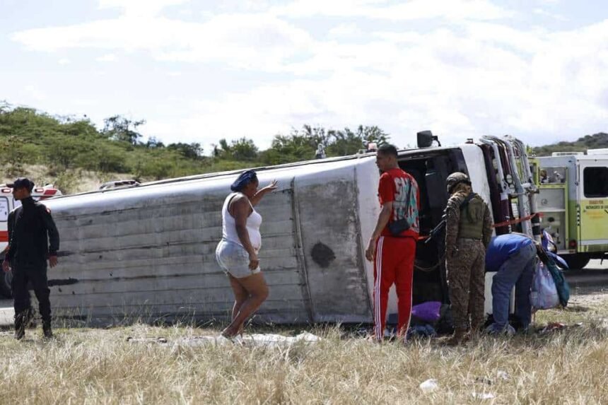 El vehículo había salido desde Las Matas de Farfán, en San Juan, con destino a Santo Domingo. Entre los heridos se encuentran menores de edad, quienes reciben atenciones médicas.