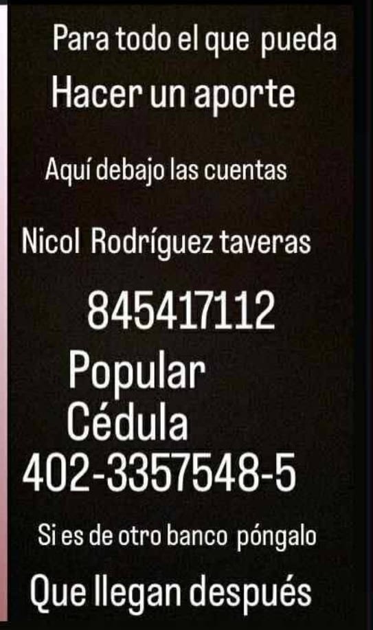 Exhortó a todos aquello que puedan colaborar con Pedro Luis, pueden realizar sus aportes a las siguientes cuentas.