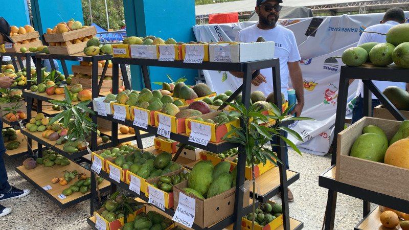 Exposición de mangos en la feria.