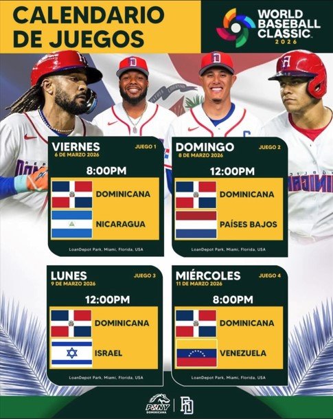 Este es el calendario de juegos de República Dominicana en el World Baseball Classic 2026.