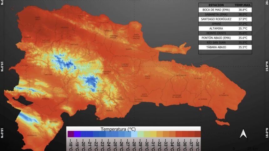 Según un reporte del Instituto Dominicano de Meteorología (Indomet), la comunidad de Boca de Mao, en la provincia Valverde, ha registrado la temperatura más alta en lo que va de mes, con 38.8 °C, el pasado viernes 4 de julio.