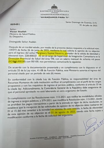 PEDRO BRAND, RD.- El excandidato a la alcaldía del municipio de Pedro Brand por el Partido Revolucionario Moderno (PRM), Margnaury Espinal, rechazó un nombramiento en el Ministerio de Salud Pública, al considerar que sería injusto aceptar una función mientras su equipo de trabajo, que apoyó firmemente la campaña, permanece sin empleo en el Gobierno.