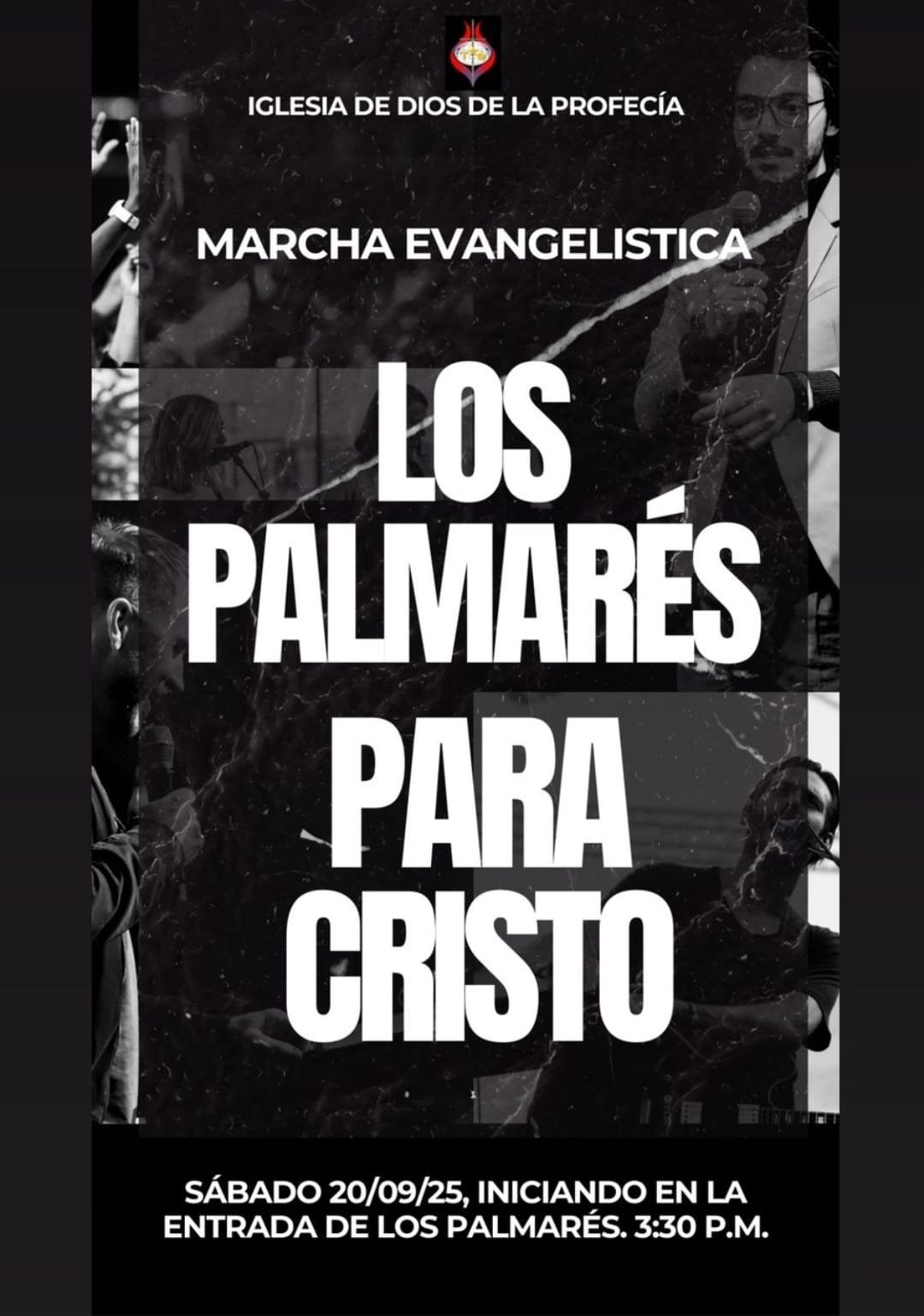 LA GUAYIGA, RD.- La Iglesia de Dios de la Profecía, invita a todos los moradores del sector de los Palmares I, II, y III a participar de la «GRAN MARCHA» LOS PALMARES PARA CRISTO.