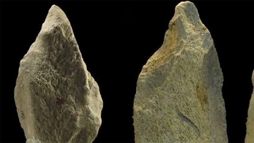 Las herramientas paleolíticas de hueso, madera y cuerno de animal para tallar piedras y darles bordes afilados son artefactos poco comunes en los yacimientos arqueológicos, ya que su naturaleza orgánica las hace propensas a desintegrarse.