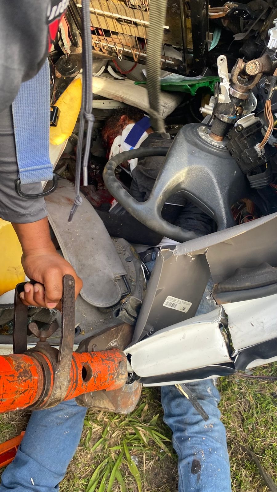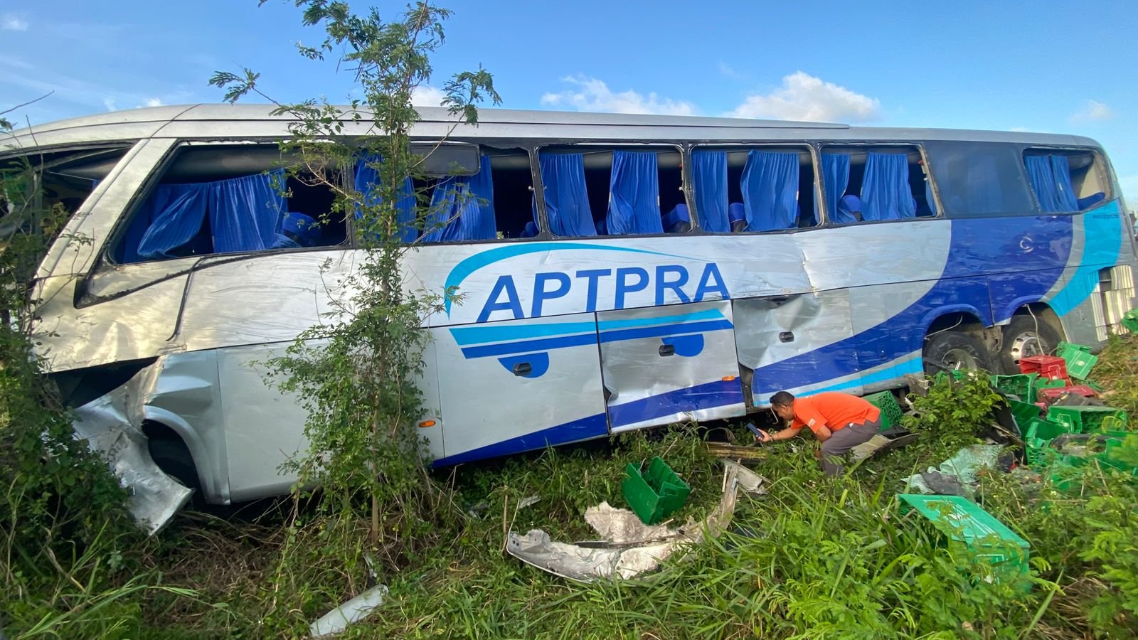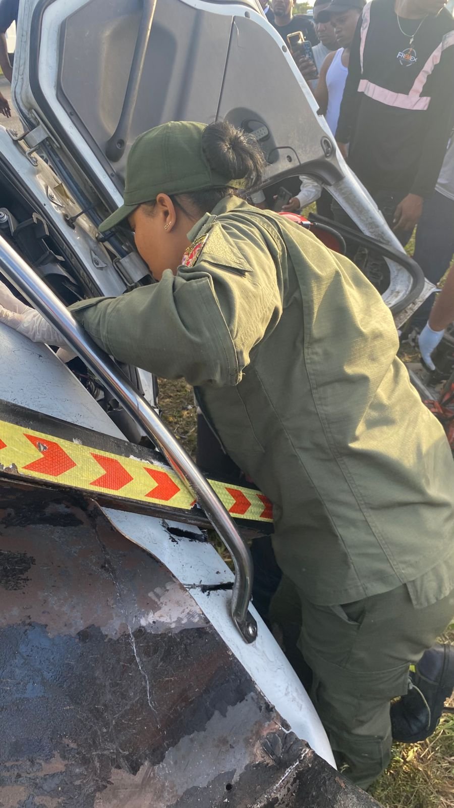 En las imágenes se observa el impacto entre cañaverales, con la presencia de: Ambulancias del 911, Unidades de tránsito, Paramédicos en el lugar, Personal de asistencia vial de Obras Públicas