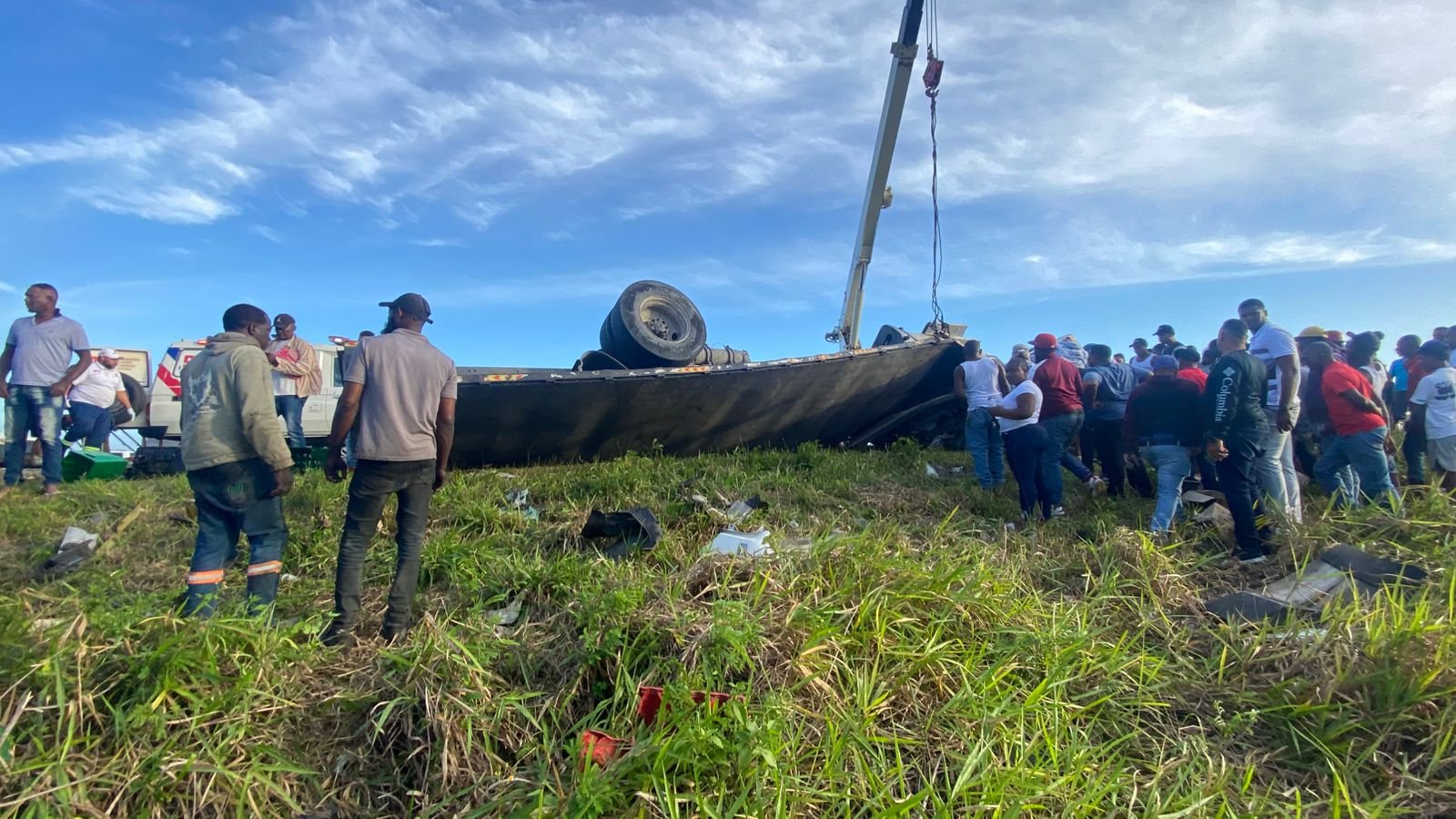 El aparatoso accidente ocurrió en la Autopista del Coral donde se registró un fuerte accidente entre un autobús de transporte y un vehículo de carga, en plena vía, próximo a unos 2 kilómetros del peaje de La Romana.