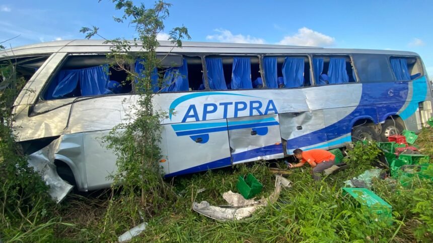 En las diferentes imágenes se observa el autobús, propiedad de la compañía APTPRA colisionó con un camión tipo patana.