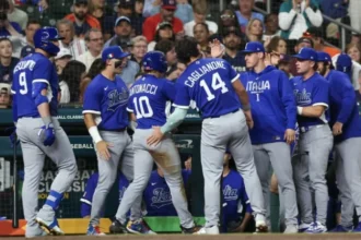 “The Machine” está jugando su último partido de temporada regular en el emblemático estadio de la ciudad de San Luis y al momento ha conectado doble y cuadrangular, con tres carreras empujadas.