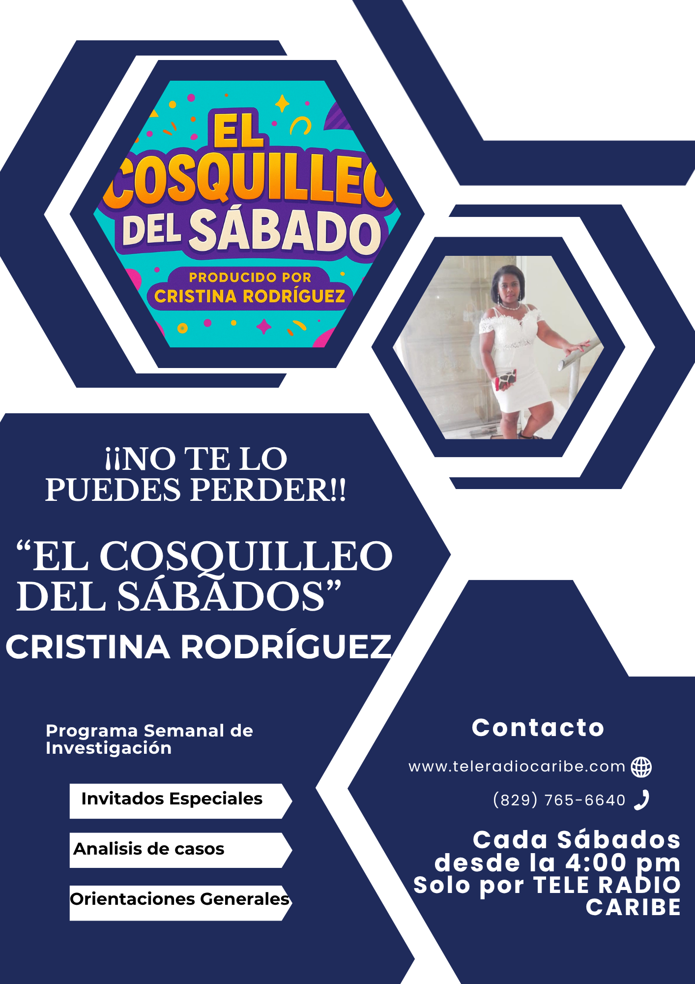Dirigido y producido por la talentosa comunicadora Licda. Cristina Rodríguez, “El Cosquilleo del Sábado” se transmitirá todos los sábados de 4:00 a 5:00 de la tarde por las pantallas de Tele Radio Caribe, ofreciendo a la audiencia una mezcla única de entretenimiento, entrevistas, noticias del espectáculo, cultura local y ese toque de picardía que solo un “cosquilleo” bien contado puede brindar.