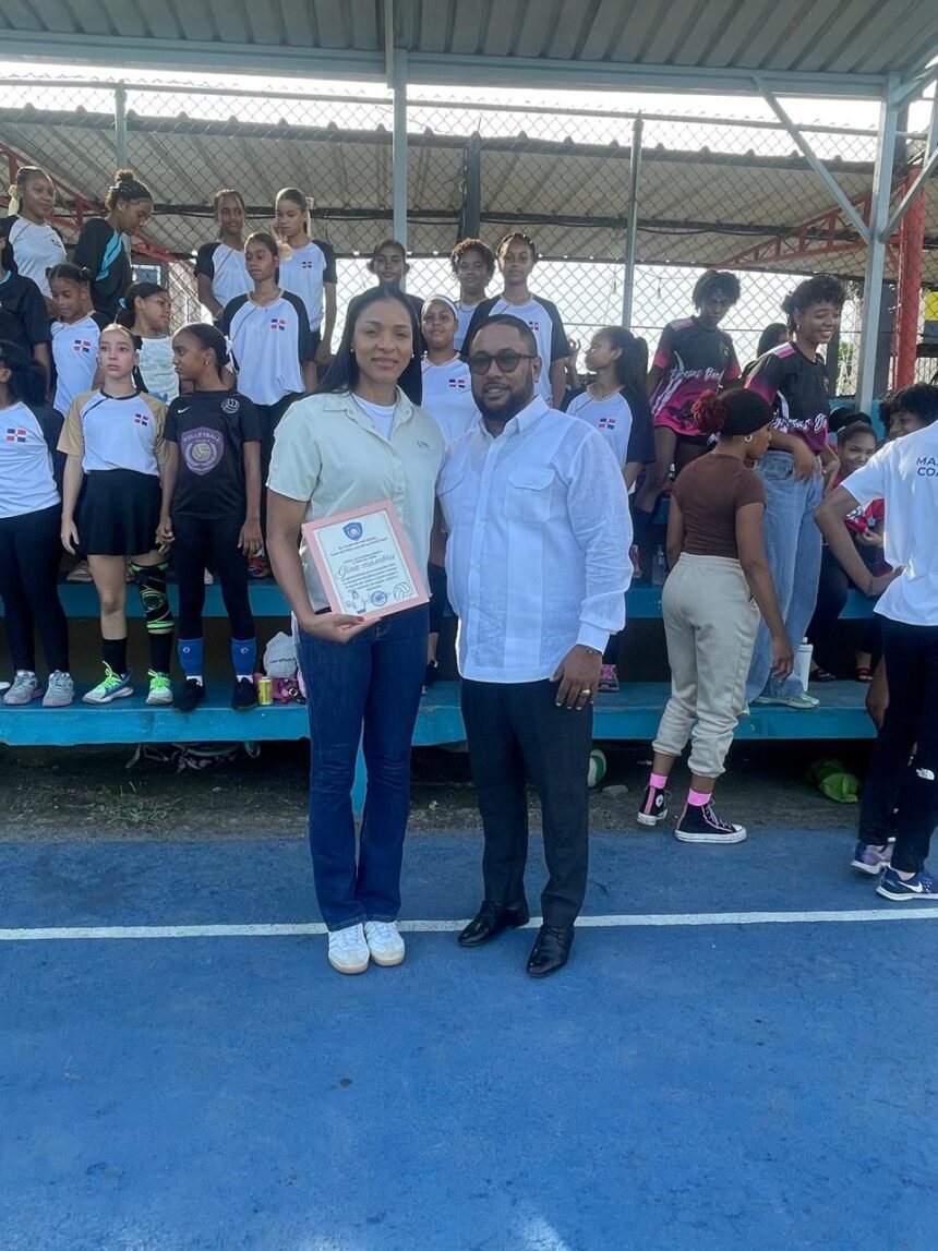 LA GUAYIGA, RD.- En el día de hoy el empresario SANTIAGO NATANAEL ESCAÑO (The Flow), propietario del Mini Market THE FLOW, estuvo entregando un reconocimiento a una de las inmortales del deporte del Volleybaal de la Republica Dominicana.