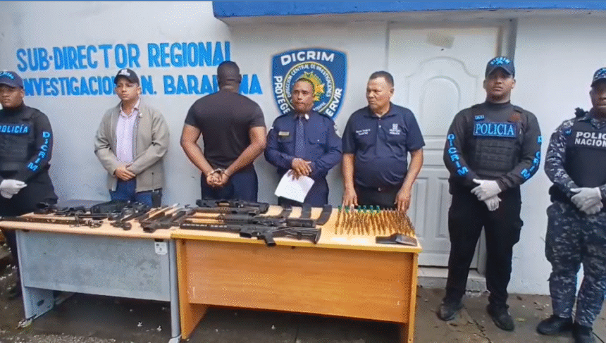 BARAHONA, RD. – LUIS MANUEL RUIZ fue arrestado este miércoles en Barahona tras un operativo conjunto de la Policía Nacional y el Ministerio Público, en el que se incautó un arsenal de armas ilegales en su residencia ubicada en la calle Luis E. Delmonte.