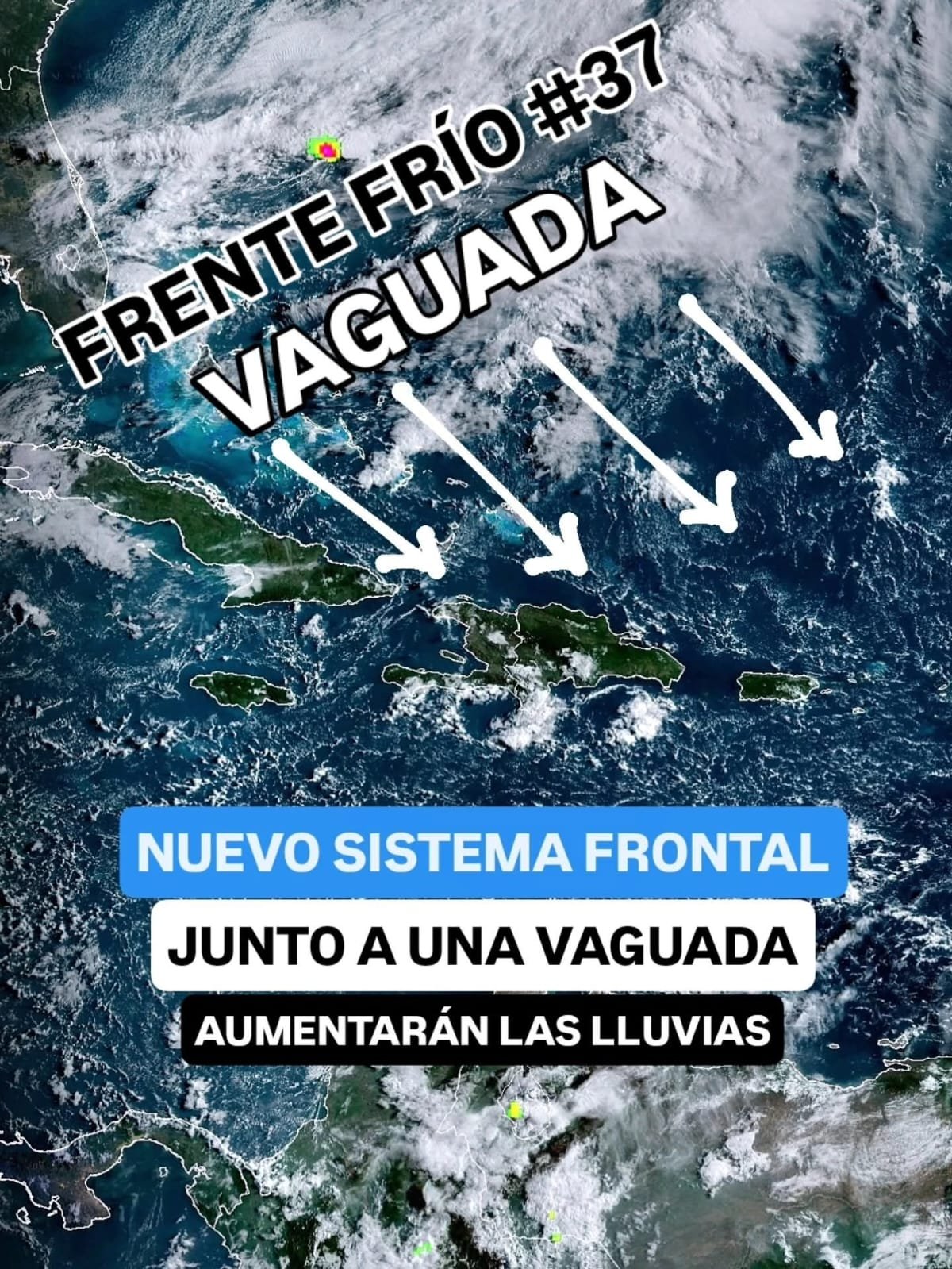 SANTO DOMINGO, RD.- Un nuevo sistema frontal, fuera de temporada, estará llegando al norte de República Dominicana durante las próximas 48 horas: vendrá acompañado de una vaguada fortalecida, incrementando el potencial de aguaceros torrenciales e inundaciones repentinas en gran parte del país.
