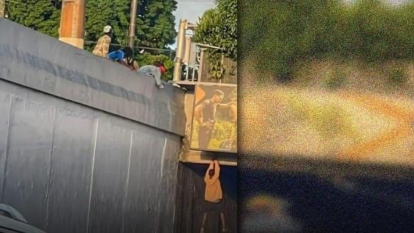 SANTO DOMINGO, RD.- Un hombre se trepó por unas barandas y se colgó del túnel que está en la avenida Las Américas, con sus pies colgando sobre los vehículos que van transitando, lo cual ha provocado pánico y temor ante la posibilidad de que ese ciudadano se lance al vacío y ocurra una tragedia, la mañana de este mismo jueves.