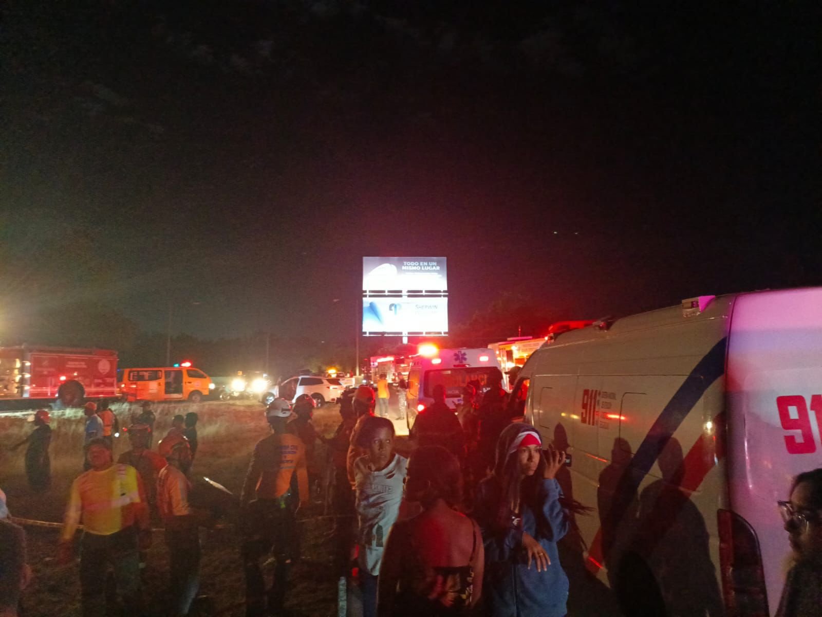 El Sistema Nacional de Atención a Emergencias y Seguridad 911 informó que envió a la escena unas 12 ambulancias, de las cuales nueve corresponden a la Dirección de Servicios de Atención a Emergencias Extrahospitalarias (DAEH) y tres a Comipol.
