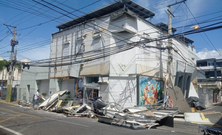 El incidente causó daños visibles en la estructura del edificio, afectando principalmente el área frontal y algunos componentes del techo.