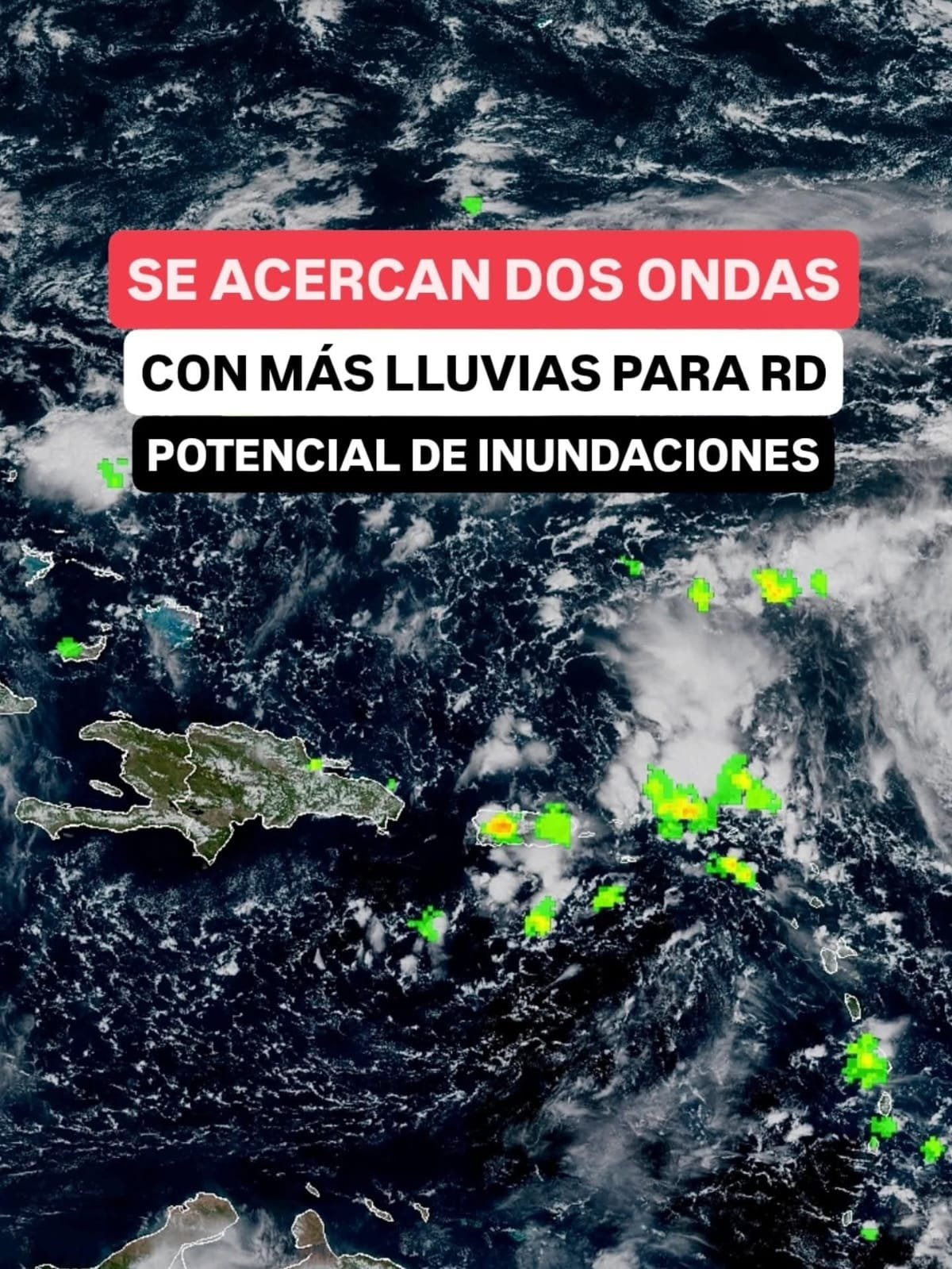 Mientras que las ondas tropicales 41 y 42 se acercan al territorio dominicano para activar los efectos de la vaguada: un aumento de las precipitaciones en gran parte de RD, con ráfagas de viento y descargas eléctricas en las próximas 24 a 48 horas.