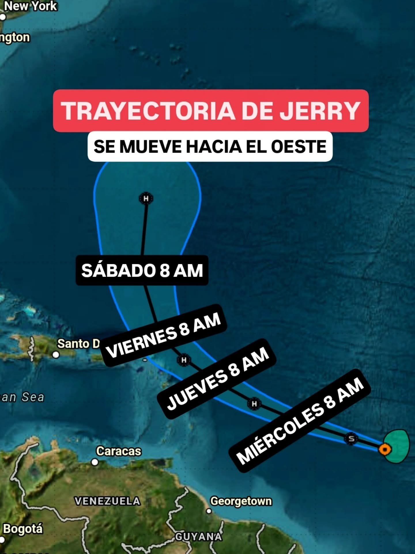 El viernes, Jerry transitará al noreste de Puerto Rico y para el sábado se espera que se ubique a más de 600 kilómetros al noreste de República Dominicana: por el momento no representa peligro para nuestro país.