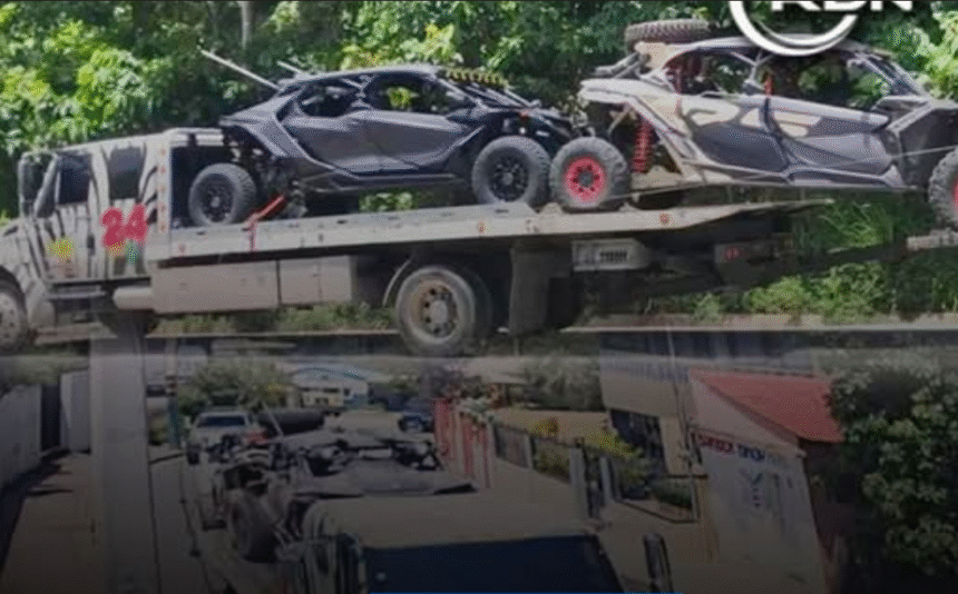 JARABACO, RD.- Una tragedia se registró este Domingo en la carretera que comunica a Jarabacoa con la ciudad de La Vega, específicamente en la zona del Puerto, cuando una grúa que transportaba dos vehículos tipo Buggy perdió el control y cayó al precipicio.