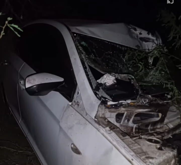 Según el comunicador Rafael Suero, el impacto fue tan fuerte que el motor del carro quedó encima de la vía Mientras que el vehículo quedó en el monte.
